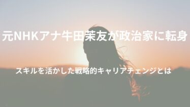 政治家元NHKアナ牛田茉友が政治家に転身!キャリアチェンジで活かしたスキルとは 元NHKアナ牛田茉友さんが政治家へ転身。報道で磨いたスキルを活かしたキャリアチェンジの成功例や、転職ノウハウ、キャリアアップに直結する仕事力の伸ばし方を詳しく解説。新しい分野への挑戦を考える方にも必見の内容です。 2025.09.27政治家